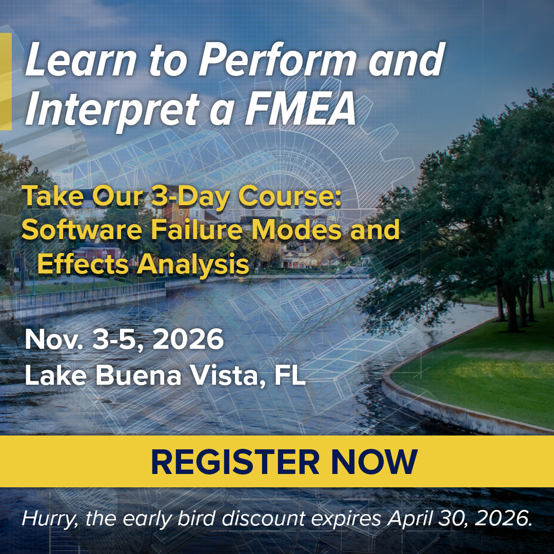 Products tagged “Software Failure Modes Effects Analysis (SW FMEA)”